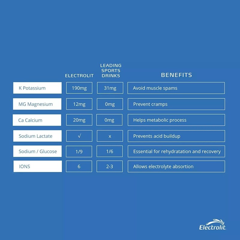 - SCIENTIFICALLY FORMULATED ELECTROLYTE DRINK: Electrolit’s formula offers an optimal balance of electrolytes to help support dehydration. Magnesium, Sodium, Potassium, and Calcium work together to help you hydrate faster.
