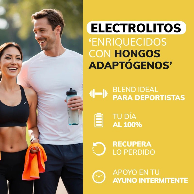 Electrolitos Con Hongos Adaptogenos en Polvo - Nootropico - Energetizante - Hidratacin Baja En Caloras, Apto Dieta Keto Rehidratacin - 20 Sticks...