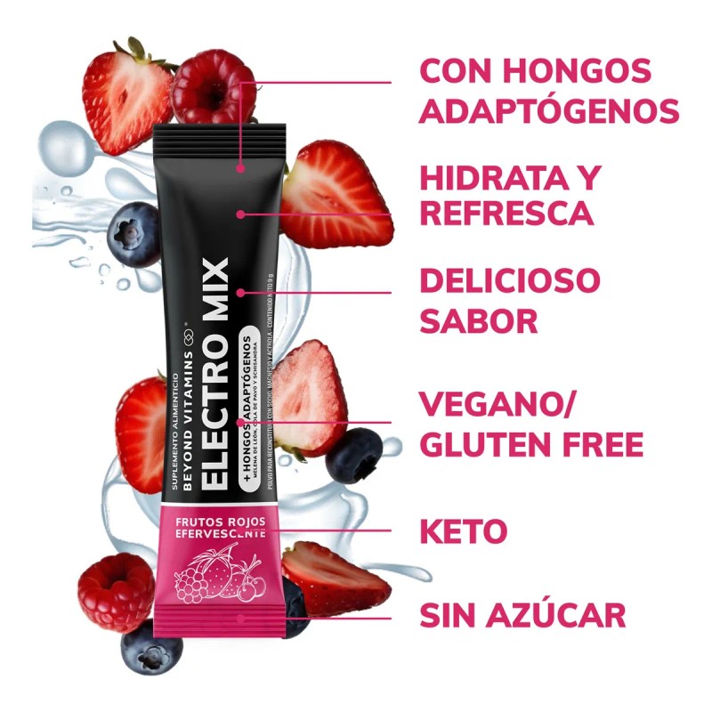- Electrolitos Beyond Vitamins, una fórmula refrescante y vibrante diseñada para revitalizar cada sorbo mientras cuidas tu salud. INGREDIENTES PUROS Y NATURALES: Elaborado con una mezcla de hongos de alta calidad, sin azúcares refinados ni añadidos artificiales. SABOR DELICIOSO Y FRESCO: Un toque vibrante y burbujeante que revitaliza cada sorbo, haciendo que hidratarse sea un placer. BAJO EN CALORÍAS Y KETO