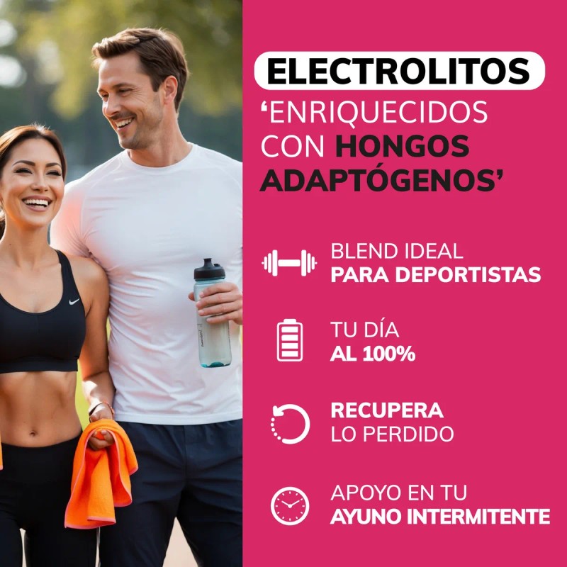 Electrolitos Con Hongos Adaptogenos en Polvo - Nootropico - Energetizante - Hidratacin Baja En Caloras, Apto Dieta Keto Rehidratacin - 20 Sticks...