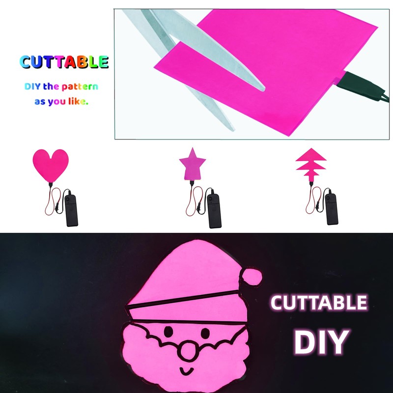 Electroluminescent (EL) Panel Light, DIY EL Backlight Cuttable Paper Lamp for Holiday Decoration/Cosplay/Warning, Pink (10cmx10cm)