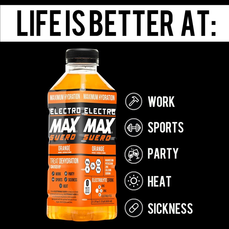 ELECTROMAX SUERO Electrolyte drink for Hydration and recovery. ZERO calories 12-Pack 21.3oz (630ml) (Lemon-Lime)