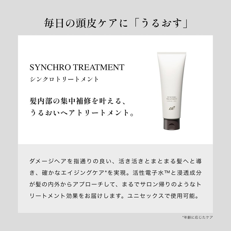 - Synchro Treatment: Activated electronic water and penetrating ingredients help to keep water inside the hair. The hair with hair that has weakened by age to give your hair a supple and relaxing salon like a beautiful hair. Unisex. Woody spice scent for a high quality moment