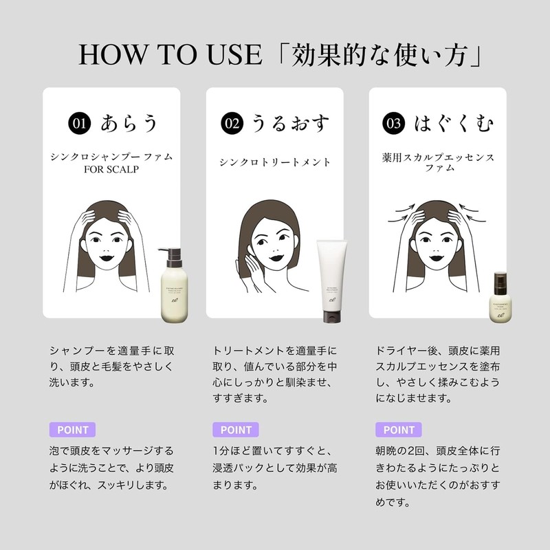 - Synchro Shampoo Fam: Excellent water retention provides good foaming power, and the power of electronically lifts dirt naturally and rinses away without damaging your skin. You can experience the refreshing feeling of after the head spa with one use and the natural rise of the top. It is also perfect for creating a scalp base that is easy to permeate. Woody spice scent for a high quality moment