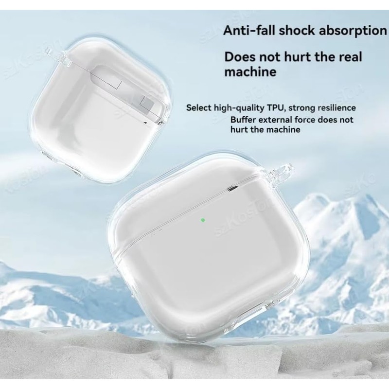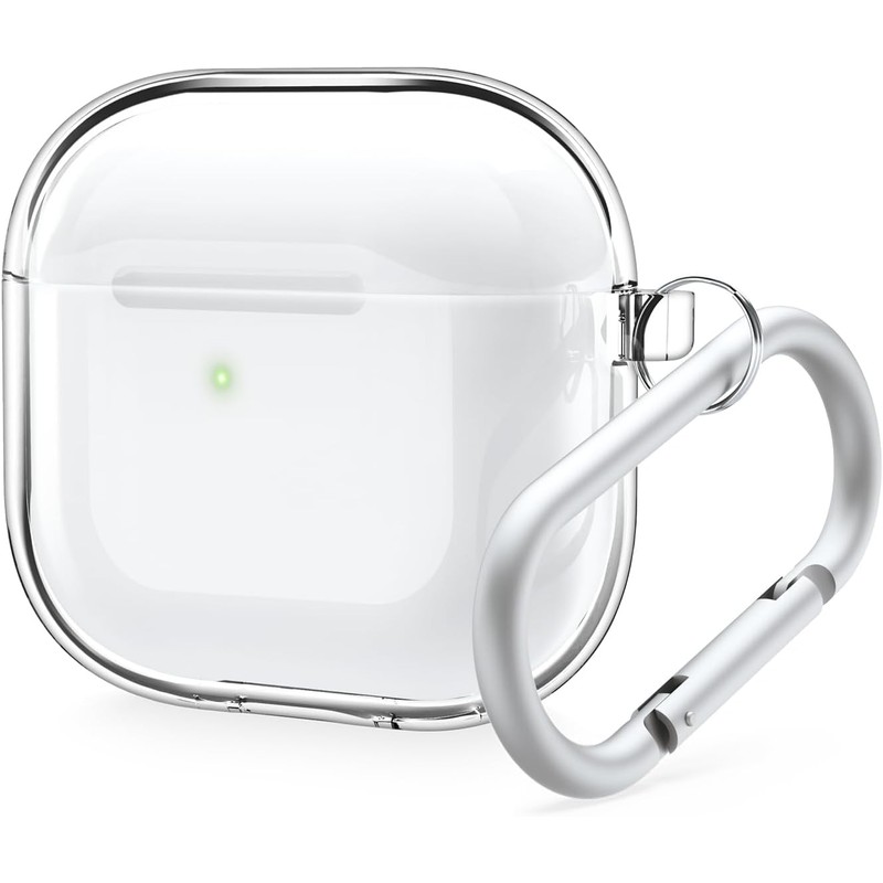 Electrones Clear Case Compatible with AirPods 4 Case, Carabiner Included, Reduced Yellowing, Wireless Charging, Shock Resistant, Transparent