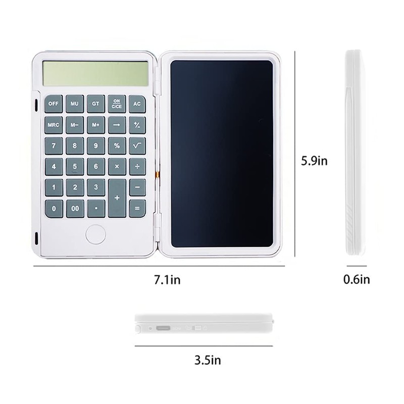Electronic Calculators with LCD E-Writing Board, 12 Digit LCD Display, Also Inkless Drawing/Memo Pads or Paperless Noting/Planning Boards, Hand-held for Daily and Basic Office by HouseMao (White)
