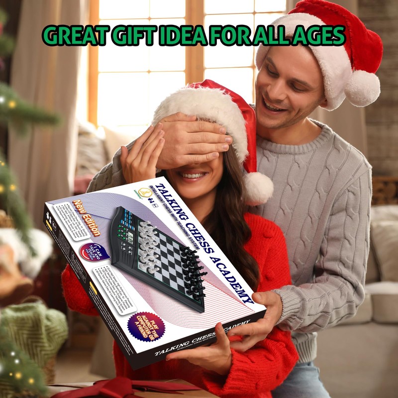 Talking Chess Academy Electronic Chess Board, Smart Chess Board with Voice Teaching System, Computer Chess Game with Strong Magnetic Pieces, 1-2 Player, Electronic Chess Set - Simple Portable Travel