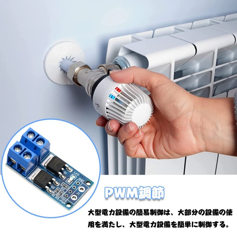 - The output side can control high power Suitable for equipment such as motors, bulbs, LED lamp bands, DC motors, micro pumps, solenoid valves You can input PWM to control the motor rotation speed, lamp brightness etc
