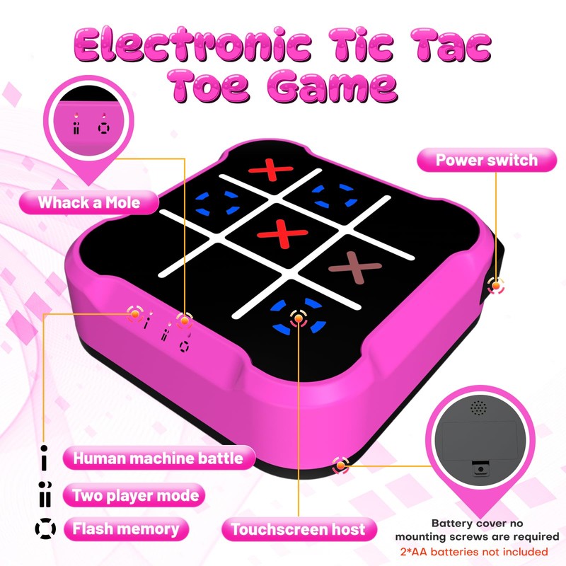 - FOUR IN ONE BOARD GAME - Compared with the wooden board tic-tac-toe, the electronic board game is smaller and more portable, and contain multiple game modes in one body. Enjoy four Tic-Tac-Toe board games in one box, Ideal for family game nights or friend gatherings, it offers quick-to-start fun for players of all ages(2*AA batteries not included).