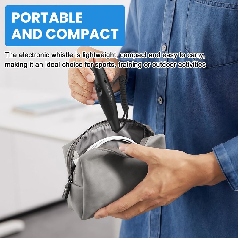 - Portable and Compact Design The electronic whistle is lightweight and compact, easy to carry and ideal for sports, training or outdoor activities. Electronic whistle. The stylish blue design is eye-catching and easy to find.