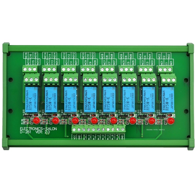 Electronics-Salon DIN Rail Mount 8 DPDT Signal Relay Interface Module. (Operating Voltage: DC 5V)