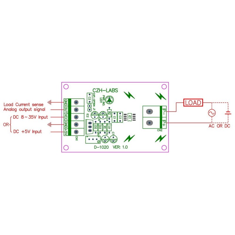Electronics-Salon Panel Mount AC/DC Current Sensor Module Board, Based on ACS712 (+/-20Amp)