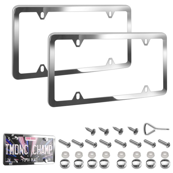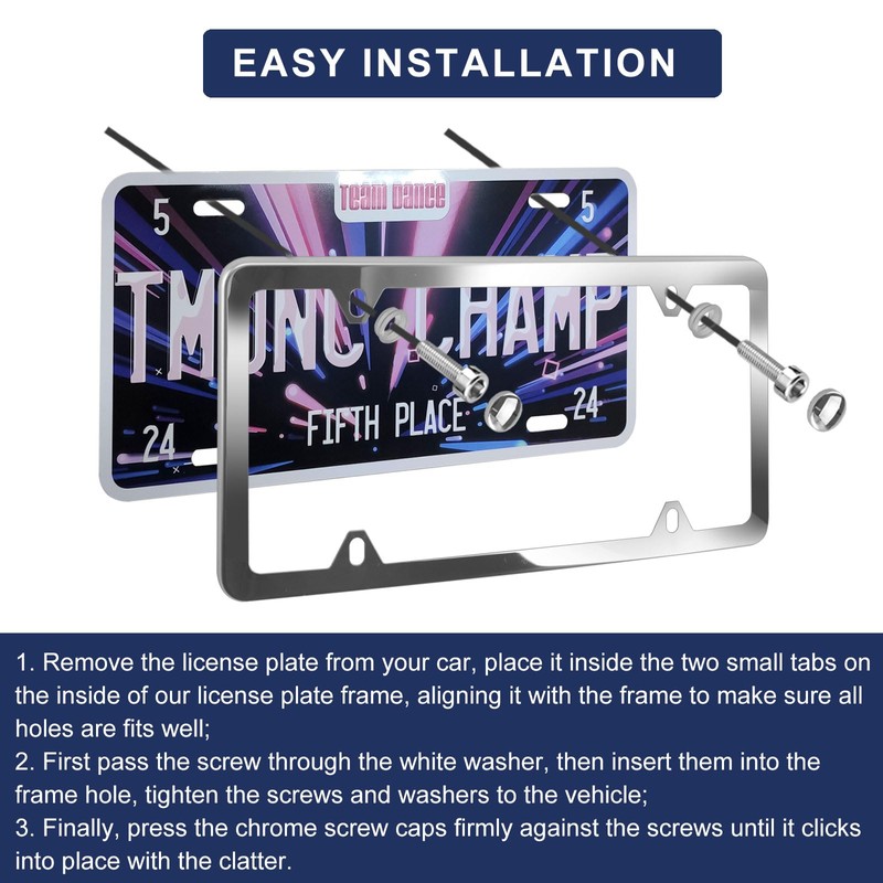 - 【Easy to Install】We provide you with 2 license plate frames, 8 machine screws, 4 self-tapping screws, 8 chrome screw caps, 8 transparent washers and 1 screwdriver. With these hardwares, you can easily install your license plate frame in just a few minutes without any special tools.