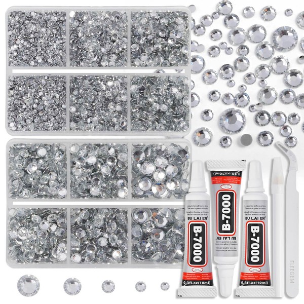 ELEEGEM Resin Rhinestones Kit for Crafts,8400 pcs Crystal Flatback Rhinestones Mixed 5 Sizes 2mm-6mm with B7000 Glue Tweezers and Wax Pencil for Fabric Tumblers and Clothes