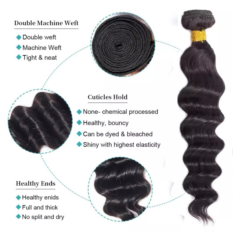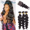 eleeshair Loose Deep Wave Human Hair Bundles with 4x4 Lace Closure 12" Closure+14"16"