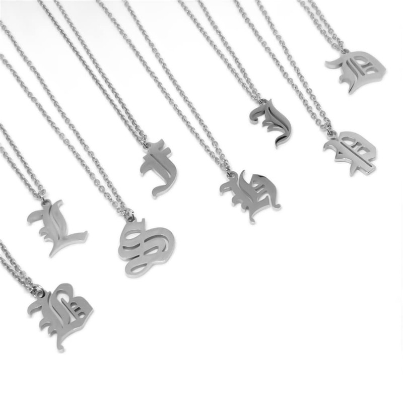 Our Old English Style Name Necklace makes a bold, beautiful statement, thanks to some truly incredible details including: Beautifully detailed lettering in Latin Old English Script, choose any initial, letter or words to celebrate yourself or someone you love, Unique, unexpected style that makes this necklace an absolute standout.