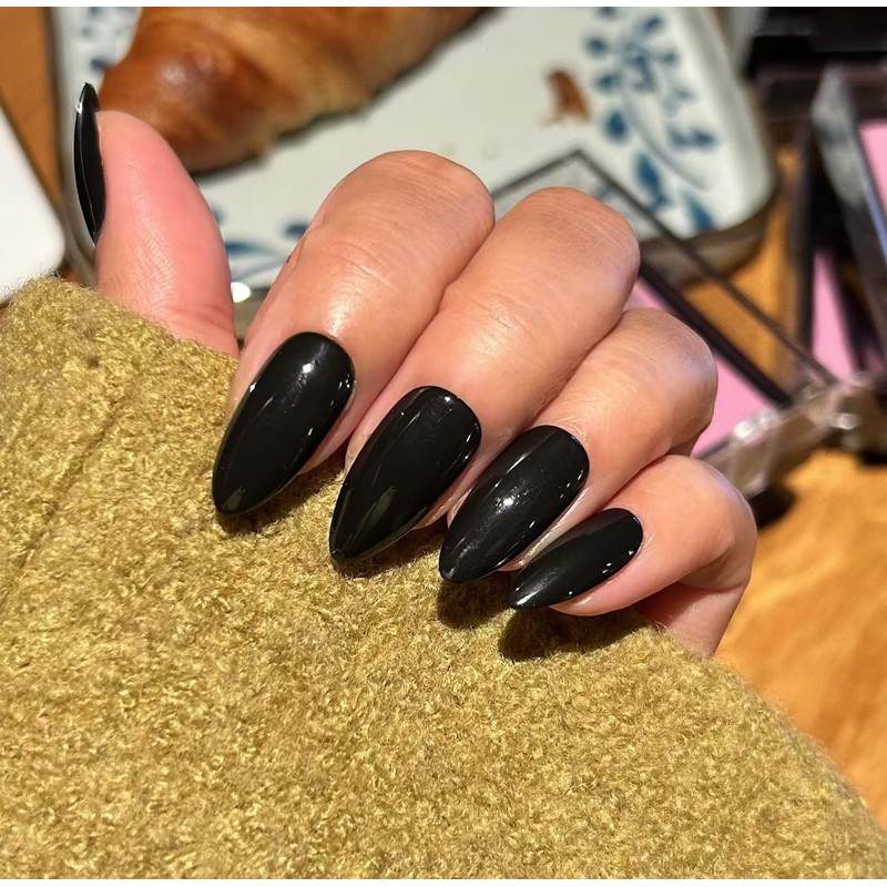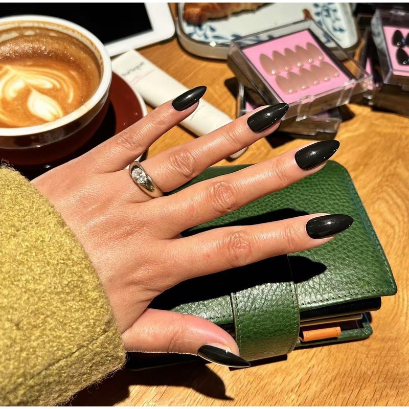 - 【Solid Color and Long Almond False Nail Set】 The Chrome Black Press On Nail nails almond shape are manufactuChrome Black using state-of-the-art acrylic injection technology.This innovative technique ensures that our Chrome Black stiletto nails press on medium are free from chips and bubbles,providing a long-lasting solution for beautiful nails.