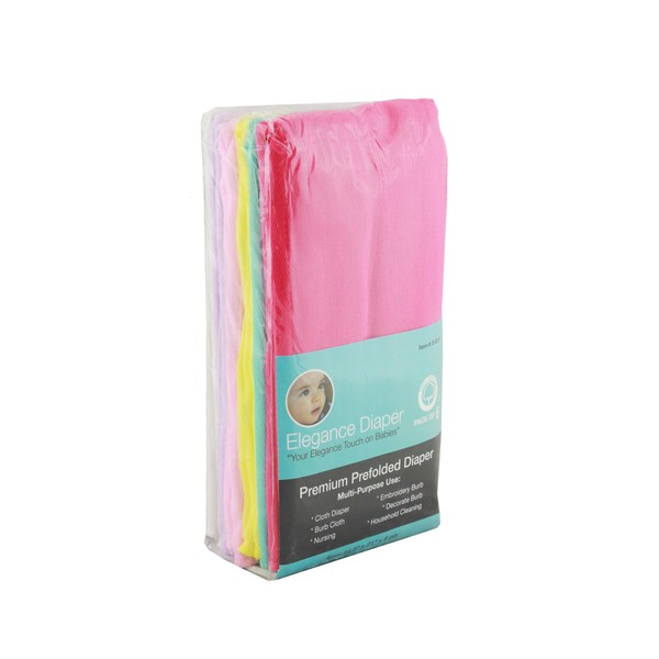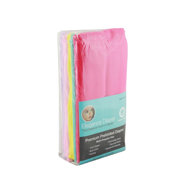 Elegance Diaper, Prefold Cloth Diaper Regular 4x6x4 6 Pack 100% Cotton (Girl Assorted), Large