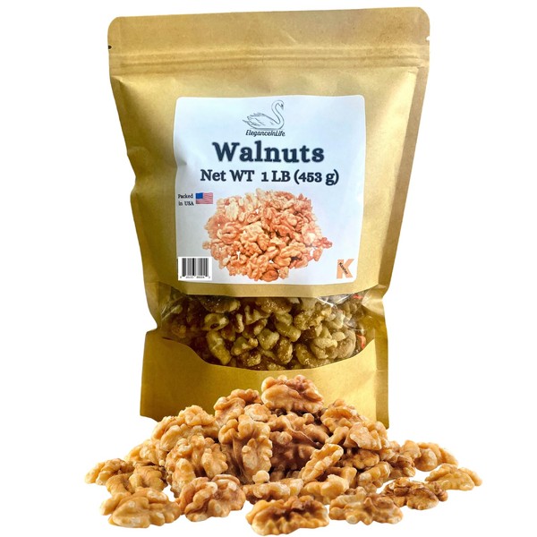 EleganceInLife Walnuts 1 LB 453g Fresh and Packed in USA Kosher Halal