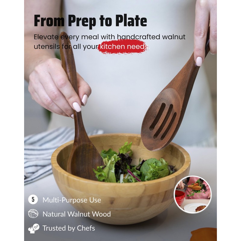 - Eco-Friendly & Safe – This non toxic cooking utensils set made from 100% natural walnut wood, this utensils set is a healthier, eco-friendly choice for your kitchen. It keeps your non-stick cookware scratch-free and adds a touch of rustic charm, making every meal feel a bit more special.