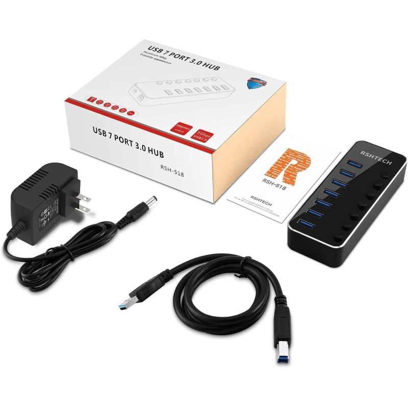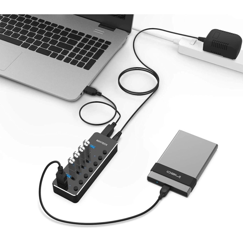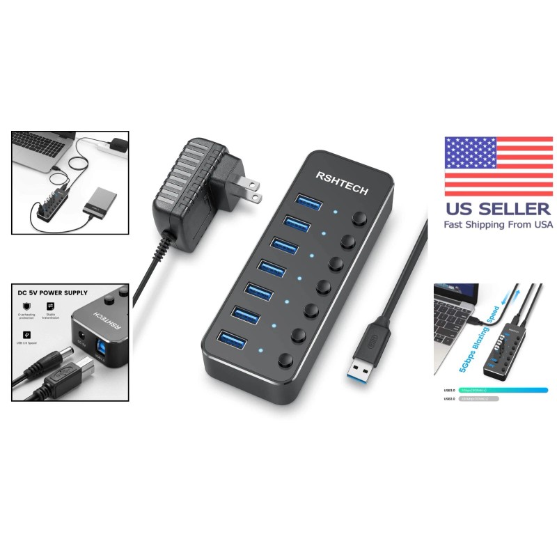Elegant 7-Port USB 3.0 Hub - Fast Data Transfer with Individual Switches