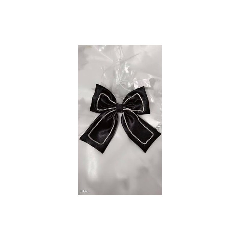 - DESIGN: Luxurious black satin bow featuring an elegant rhinestone trim outline that adds a sophisticated sparkle to any hairstyle