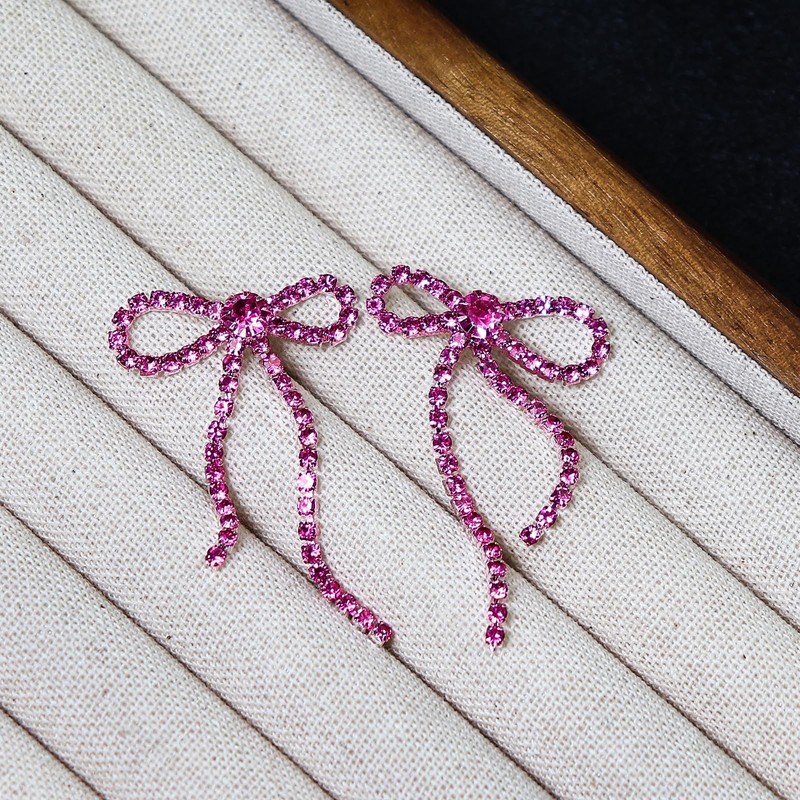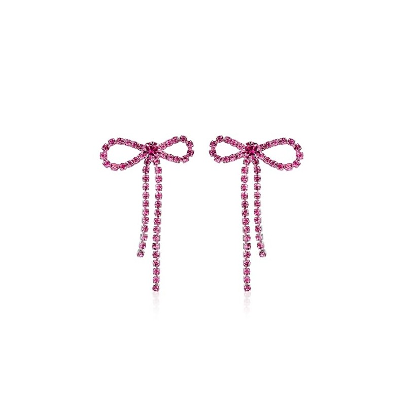 Elegant Bow Earrings Shiny Rhinestone Dangle Earrings Colorful Sparkly Crystal Long Tassel Bowknot Dangle Earring for Women, Zinc, alloy