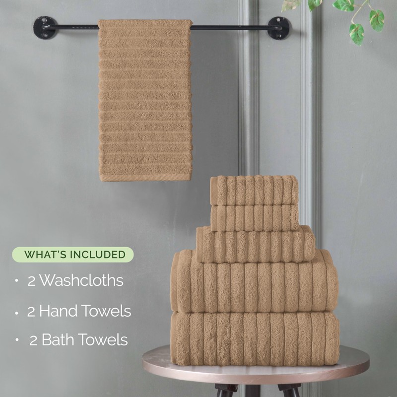 Elegant Comfort 100% Turkish Cotton Corduroy Ribbed Luxury Bath Towels 6-Piece Set, Premium Feel - Quick Dry, Highly Absorbent, Contains 2 Bath Towels, 2 Hand Towels, and 2 Washcloths, Taupe