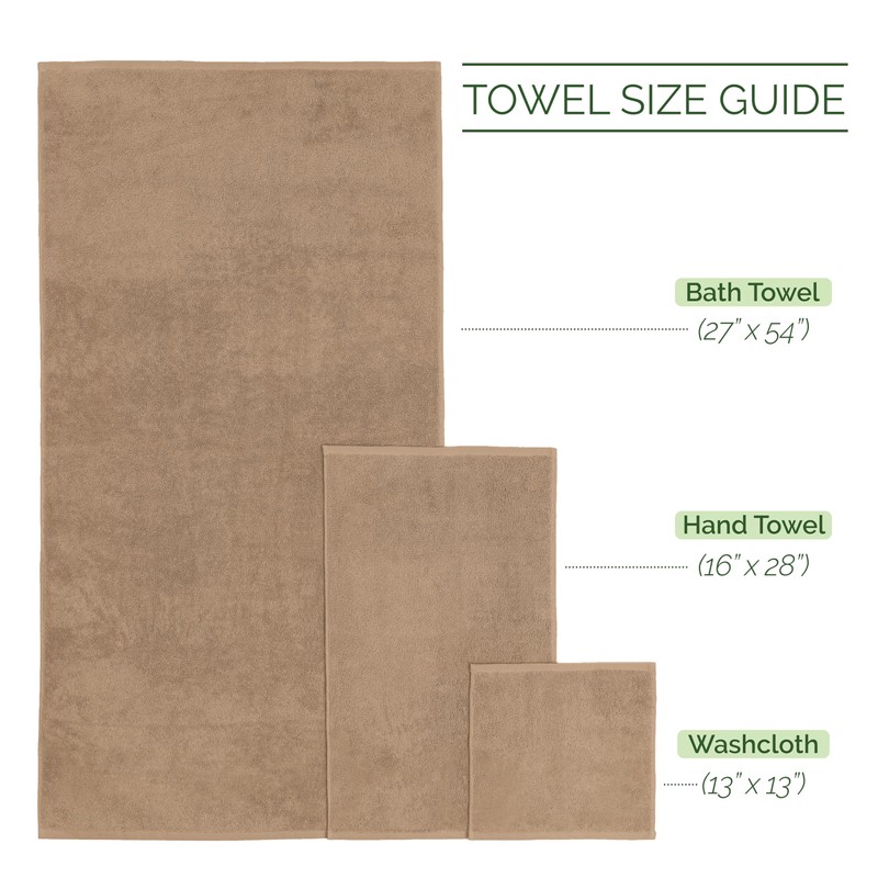 - MEASURES AND ITEMS INCLUDED: This towel set includes 2 Bath Towels (27" x 54"), 2 Hand Towels (16" x 28"), and 2 Washcloths (13" x 13"), made from 100% Turkish Cotton, with a variety of color options available. This towel set features a substantial weight of 650 GSM, suitable for heavy-duty use.