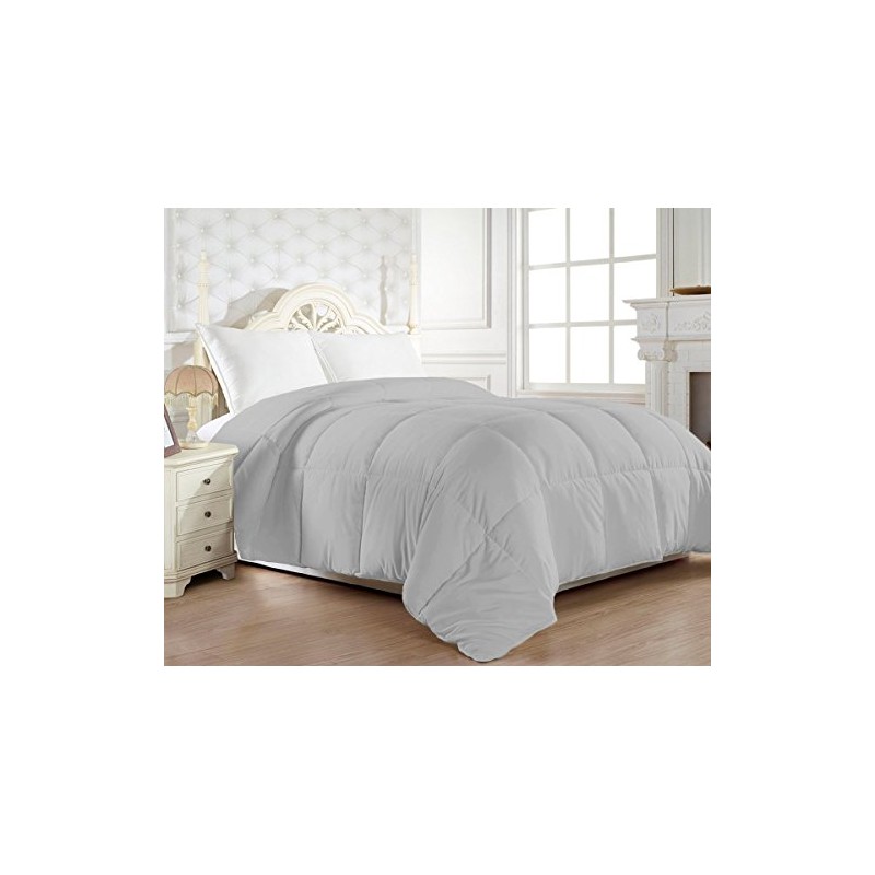Elegant Comfort 1200 Thread Count Goose Down Alternative Comforter 100% Egyptian Cotton - 750Fill Power - Solid Gray King/California King