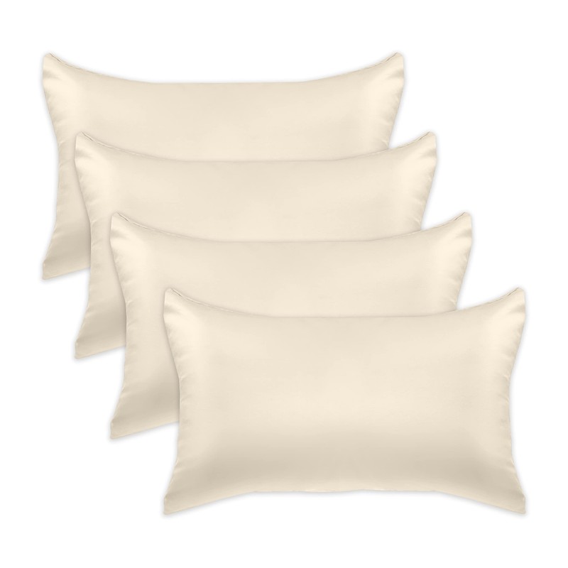 Elegant Comfort 4-Pack Cooling Viscose Satin Pillowcase Set with Hidden Zipper Closure, Silky Smooth for Best Hair and Skin Care-Beautiful Gift Box-4-Piece Satin Pillowcase Set, Standard/Queen, Cream