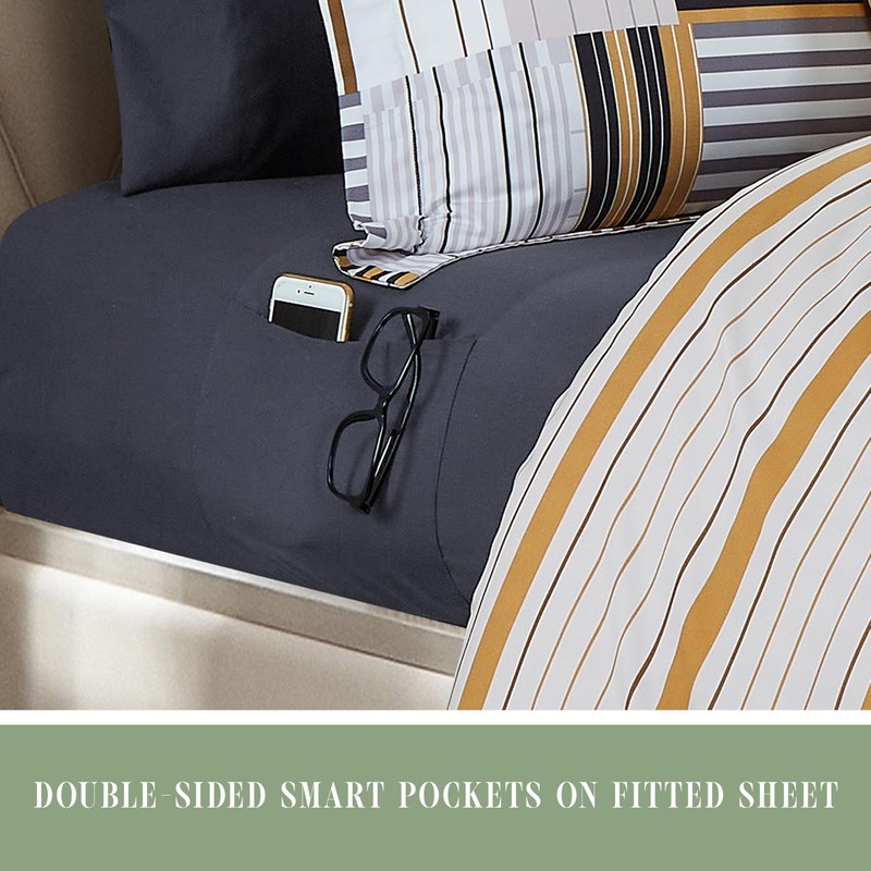 - COMPLETE BED IN A BAG: This set includes everything you need to completely dress your bed. From the comforter and sheets to the pillowcases and shams, every piece is coordinated to create a cohesive look.