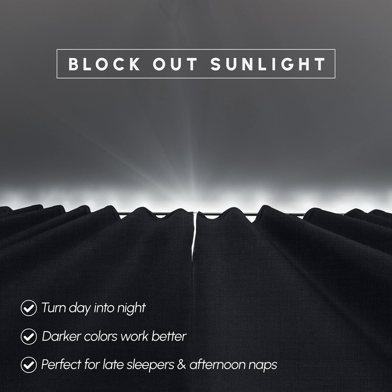 - Blackout Functions: Our bedroom curtains with white liner can block out sunlight 85% - 95%, darker colors work better. Turn day into night, enjoy your sweet sleeping and protect your furniture from color fading, providing privacy in your place. Perfect for late sleepers and afternoon naps. Perfect for any living room, bedroom, kids room or nursery window.