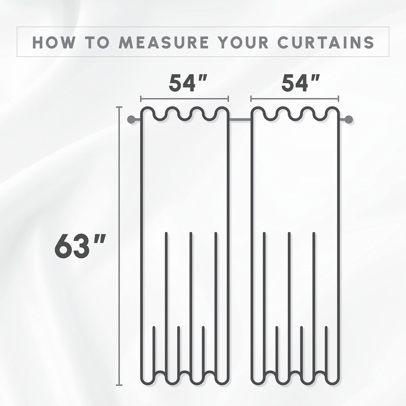 - CONTENTS & MEASUREMENTS - This Curtain set includes 2 panels each of these mesures 54" wide x 63" Long. (1.8 inch inner diameter grommets) on top, easy to install and slide. We suggest choose the right size after measuring the windows. This simple yet stylish solid curtain design instantly adds a unique, beautiful, stylish, luxury view to your bedroom, living room, dining room, and other room.