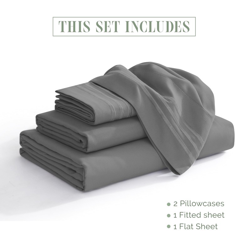 Elegant Comfort Luxurious 1500 Premium Hotel Quality Microfiber 4-Piece Sheet Set, 18-24 Inches Deep - Extra Deep Pocket Sheets - Ultra Soft 4PC Deep Pocket Sheets, King, Gray