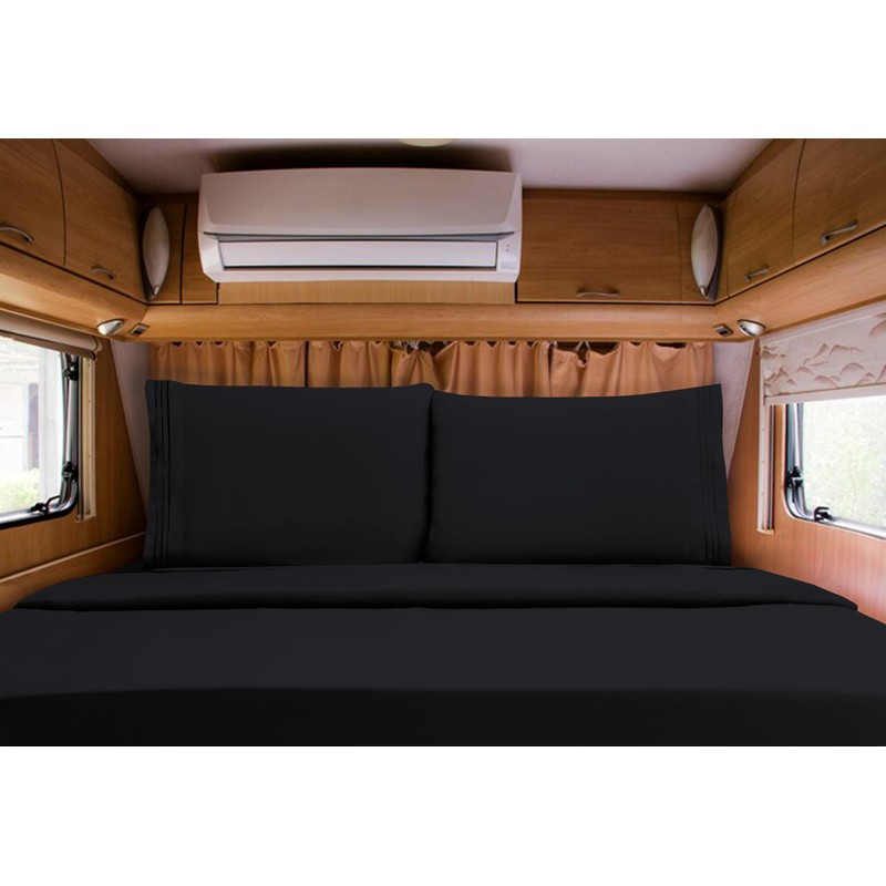 - Elegant Comfort RV Short Queen-Size Dimensions - Flat sheet 90" x 102", Fitted sheet 60" x 75", 2 Standard pillowcases 20" x 30" - Our sheets are soft, light weight, warm, and breathable. The material is stronger and more durable than cotton, with the strongest stitching to prevent tears. Deep-pocket, fully elasticized fitted sheet for mattresses up to 16 Inch thick. They are wrinkle- and fade-resistant, cold-water washable and quick-drying.