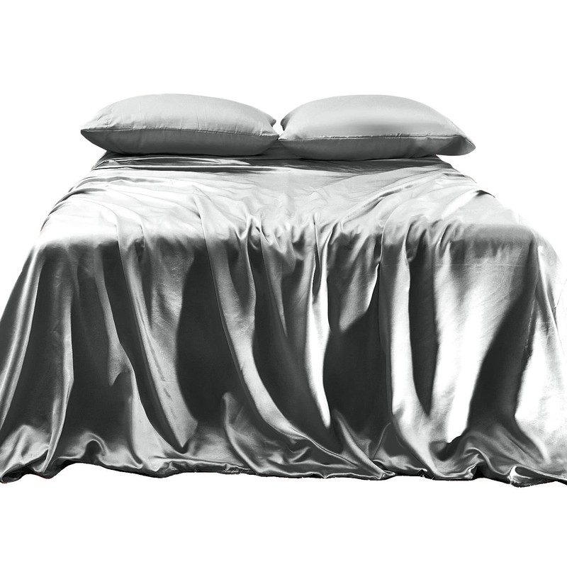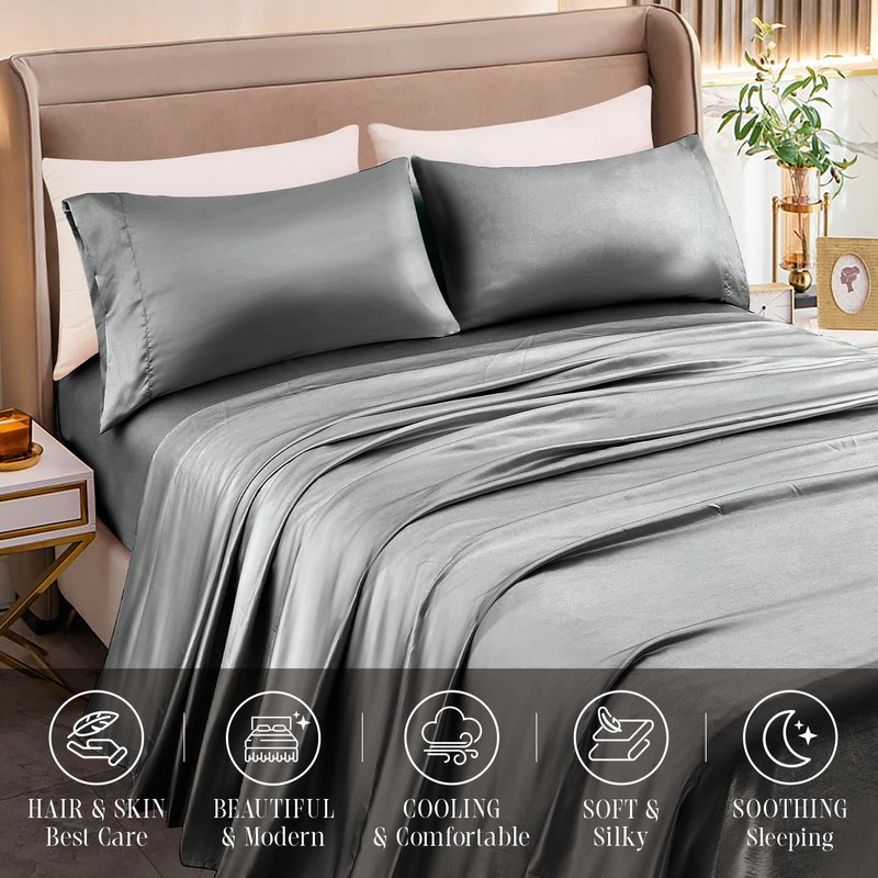 Elegant Comfort Luxurious 4-Piece Silky Satin Sheet Set, Skin and Hair Friendly, Wrinkle, Fade, Stain Resistant with Deep Pockets Fitted Sheet, Cooling Soft Satin Sheet Set, Cali King, Gray