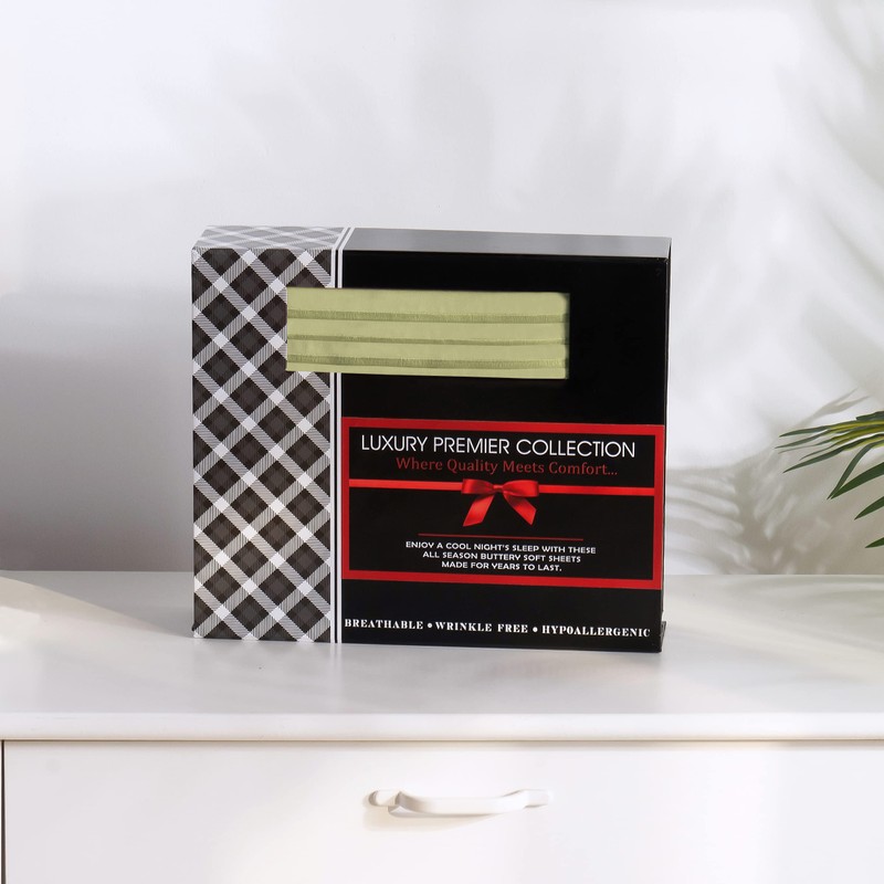 Elegant Comfort Luxurious Microfiber GIFT BOX 4-Piece Bedding Sheet Set, Breathable, Soft 1500 Premium Hotel Quality, Deep Pocket and Easy Fit, Queen, Sage-Green