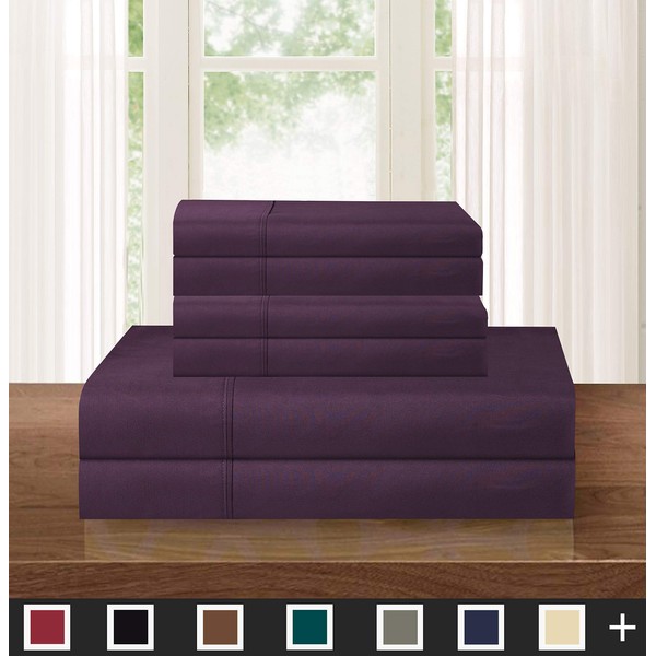 Elegant Comfort Luxurious Soft 1500 Thread Count Egyptian 4-Piece Hotel Quality Wrinkle and Fade Resistant Coziest Bedding Set, Easy All Around Elastic Fitted Sheet, Deep Pocket, Twin/Twin XL, Purple