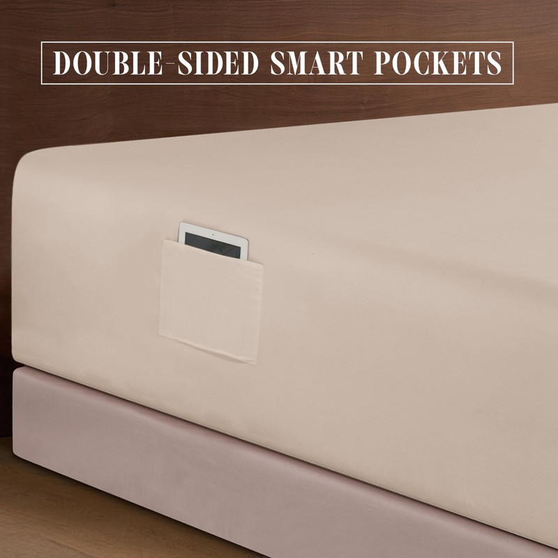 - SUPERIOR DEEP POCKET DESIGN: Our fitted sheet features an extra-deep pocket that accommodates mattresses up to 24 inches thick, making it perfect for air mattresses, foam toppers, and other high-profile bedding. Enjoy the convenience of all-around sewn-in elastic, ensuring effortless application and a secure, stay-put fit throughout the night.