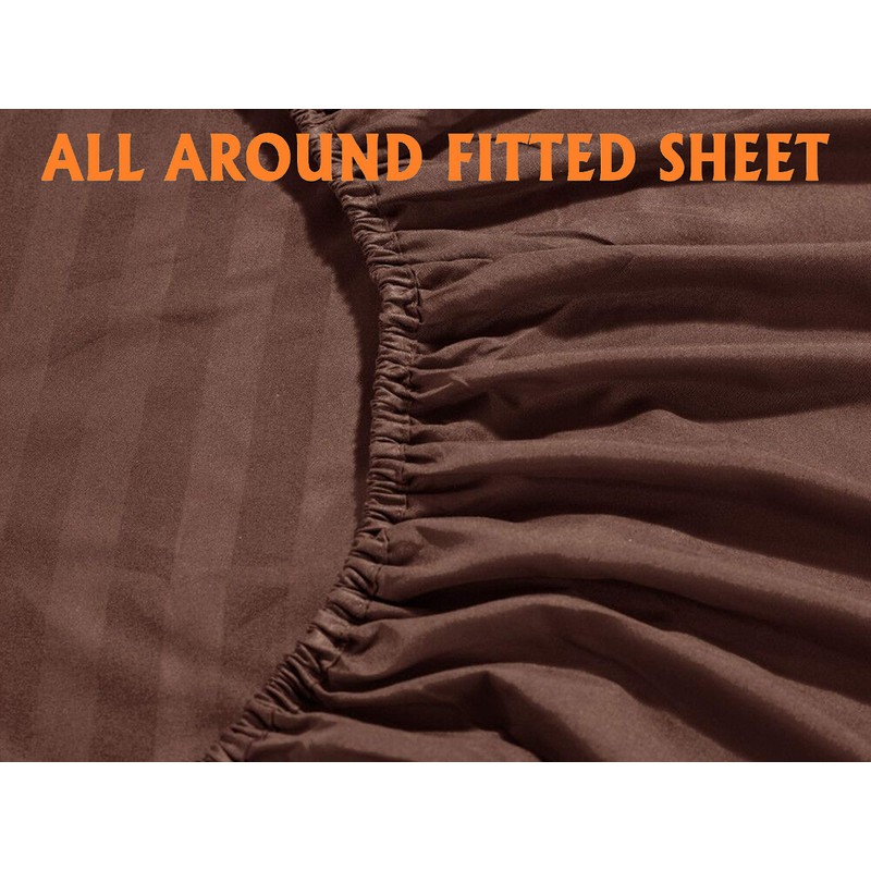 Elegant Comfort Luxury Soft Bed Sheets Dobby Stripe 1500 Premium Hotel Quality Microfiber Softness Wrinkle and Fade Resistant (6-Piece) Bedding Set, Queen, Espresso Brown