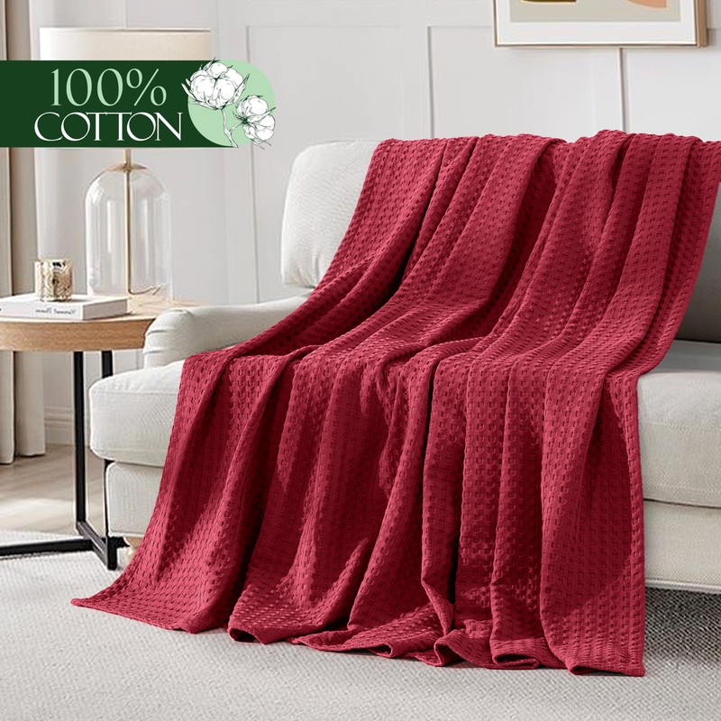 Elegant Comfort Premium 100% Cotton Waffle Blanket - Lightweight Breathable Waffle Weave Bed Blanket - Soft and Warm All Season Blanket for Couch, Sofa and Bed, Full Size 88x88 Inches, Burgundy