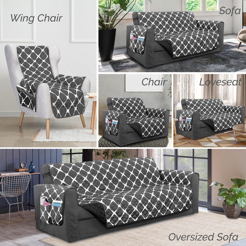 Elegant Comfort Quilted Furniture Protectors Solid and Printed Design Reversible Slipcovers Featuring Elastic Straps and Smart Pockets Great for Pets, Kids and More, Bloomingdale Chair, Brown/Cream