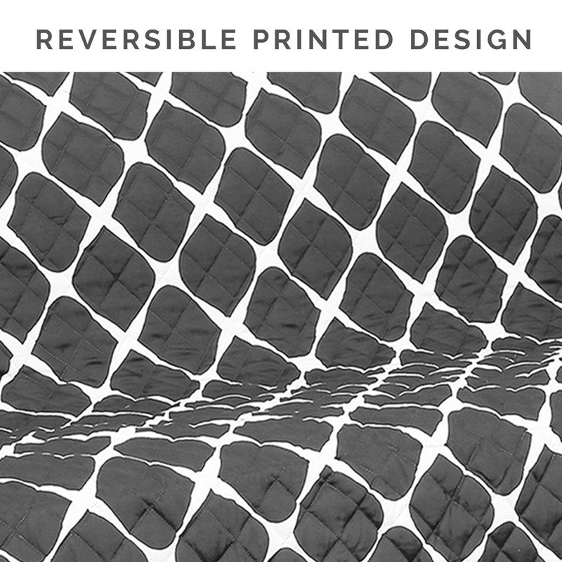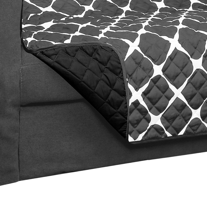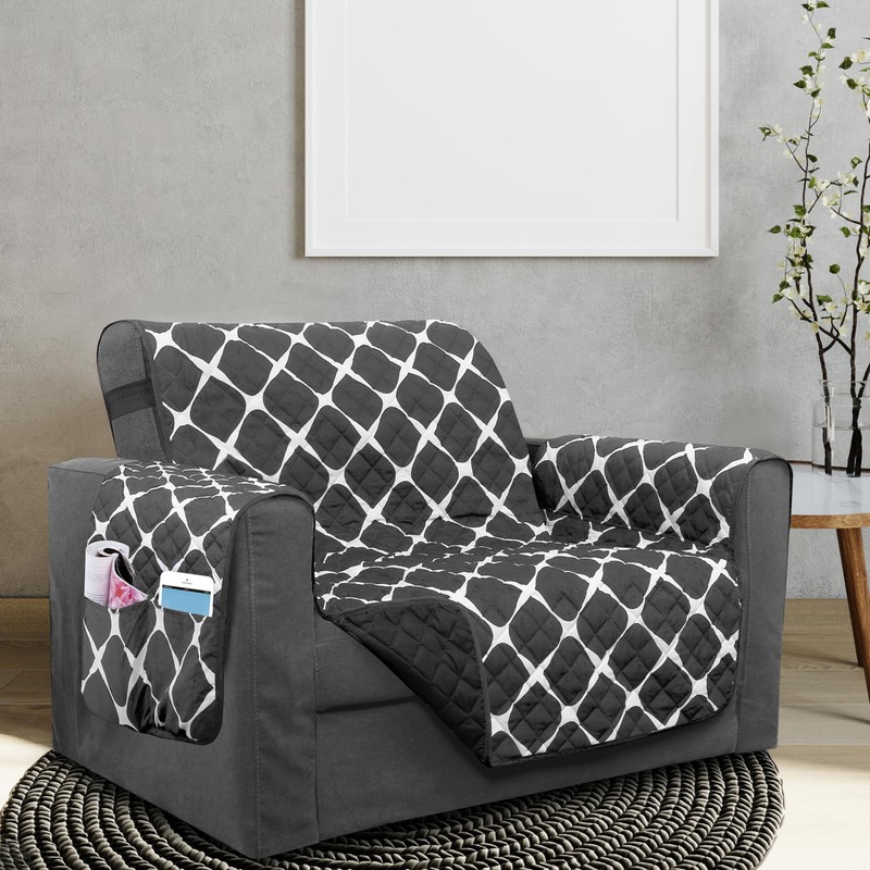 Elegant Comfort Quilted Furniture Protectors Solid and Printed Design Reversible Slipcovers Featuring Elastic Straps and Smart Pockets Great for Pets, Kids and More, Bloomingdale Chair, Grey/Black