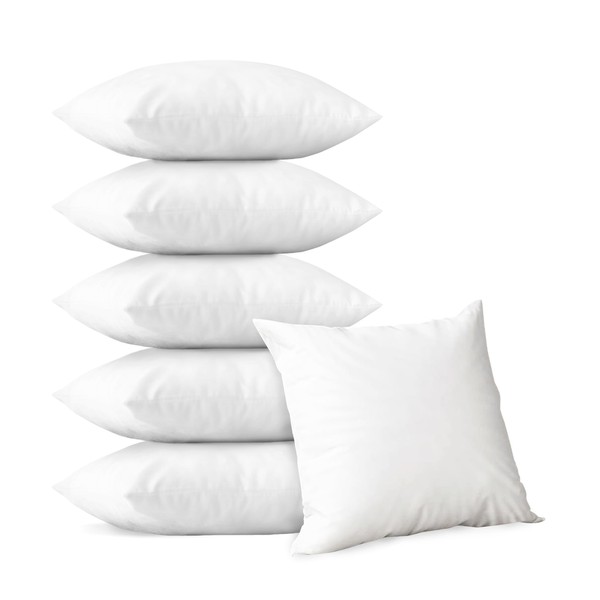Elegant Comfort Set of 6 Poly-Cotton Shell Siliconized Fiber Filling Throw Inserts Sofa Bed and Couch Indoor Decorative Pillows, 20x20 Inch - 6 Pack, White 6 Count