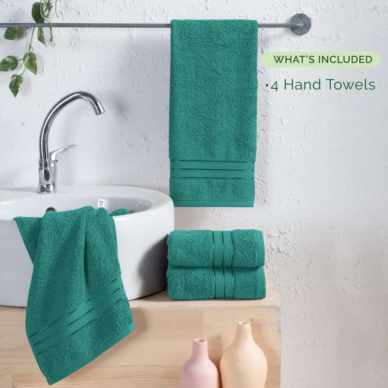 - SIZE & CONTENTS - This 100% Turkish Cotton towel set includes 4 Hand Towels (16" x 28"). Crafted for exceptional softness, these towels offer a plush, velvety feel against the skin. This collection features a high range of color options making them perfect for any type of home decor. Its luxurious design and practical features make it a thoughtful and appreciated gift for friends and family.