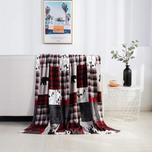 Elegant Comfort Velvet Touch Ultra Plush Christmas Holiday Printed Fleece Throw/Blanket-50 x 60", (Patch), Patchwork