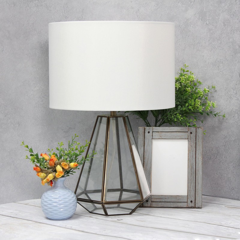 Elegant Designs LT1191-BRS 18.25" Classy and Brassy Glass Pyramid Table Lamp with White Drum Shade, Brass