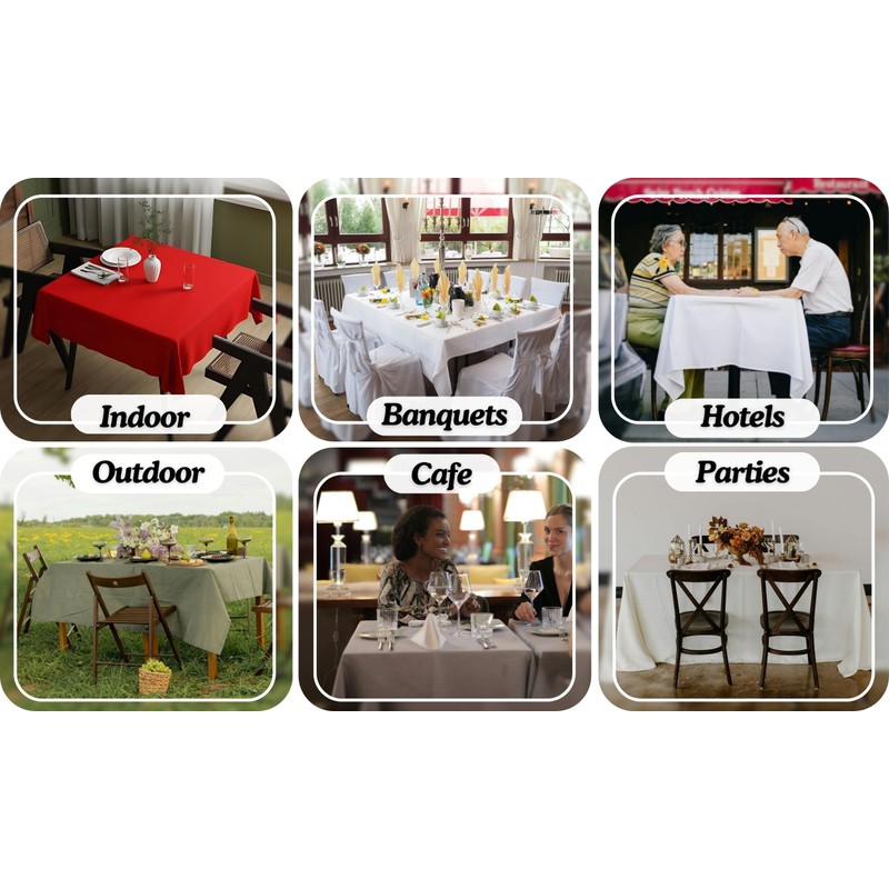 • DURABLE MATERIAL: The Elegant Event Essential's Square Tablecloths are made of Superior - quality. The tablecloth is plain and simple, but it is stylish and tasteful. These tablecloths are made of 100% polyester, which makes them strong and long-lasting. NOTE: All colour Tablecloths may have seam in the middle (subject to stock availability). The White tablecloth are only made from single piece of fabric.