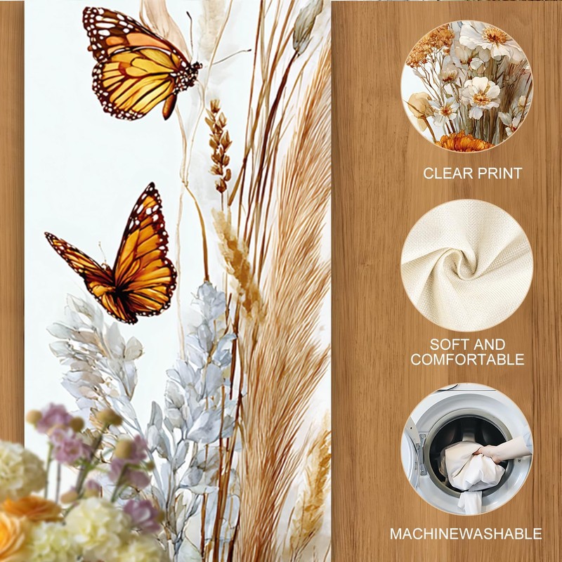 Elegant Floral & Butterfly Table Runner and Placemats Set – Autumn Linen Table Decor for Dining Room, Thanksgiving & Harvest – 1 Table Runner & 4 Matching Placemats – Rustic Fall Butterfly Design